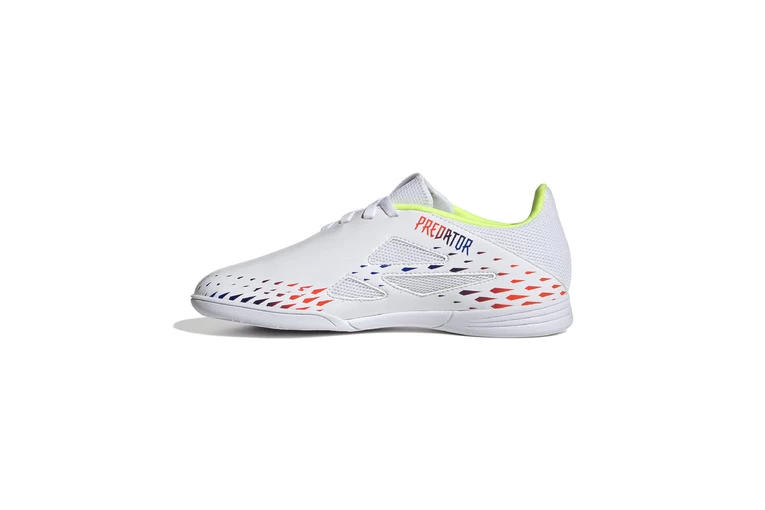 Ontwijk het alledaagse om je voorsprong te vinden. Laat een splinternieuwe kant van je voetbalspel zien met deze junior adidas Predator indoorschoenen. Het zachte synthetische bovenwerk is afgewerkt met textuur om je te helpen de bal onder controle te houden, en het hielstuk van mesh houdt je koel tijdens intensieve acties. De stroeve, genopte rubberen loopzool bijt zich vast in vlakke zaalvloeren zodat jij het spel naar je hand kunt zetten.