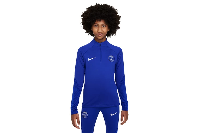 De Paris Saint-Germain Strike trainingstop heeft speciale designdetails voor de opkomende sterren van het voetbal. Een aansluitende, gestroomlijnde pasvorm zorgt ervoor dat er niets tussen jou en de bal komt. Het zweetafvoerende materiaal houdt je koel en kalm terwijl je je skills verbetert.
